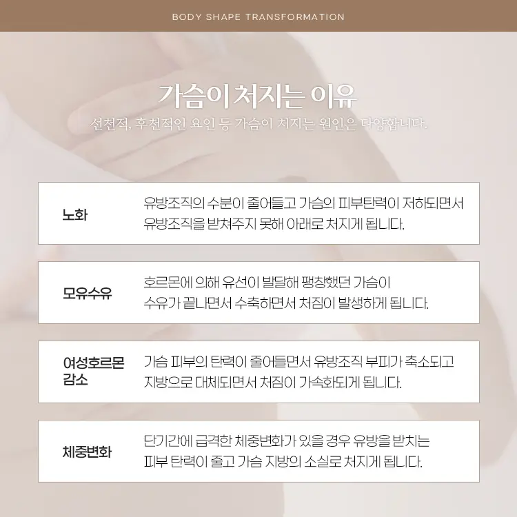 가슴처짐은 ‘위치’의 문제가 아니라 ‘구조’의 문제예요