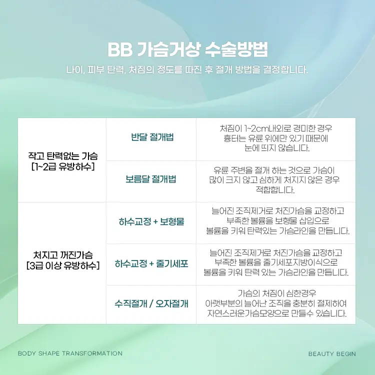 자신의 가슴처짐에 맞는 수술 유형을 진행했을 때 만족스러운 결과를 볼 수 있기 때문이에요!