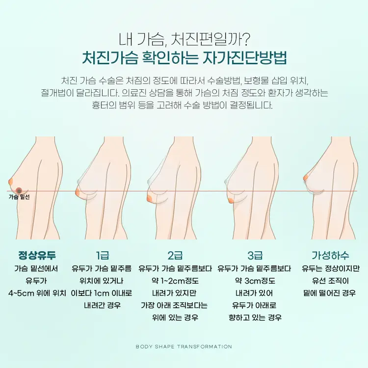 이 또한 처짐이 아주 심한 경우, 가슴처짐단계 중에서 2급이나 3급 같은 경우에는 사실 잘 맞지는 않아요.