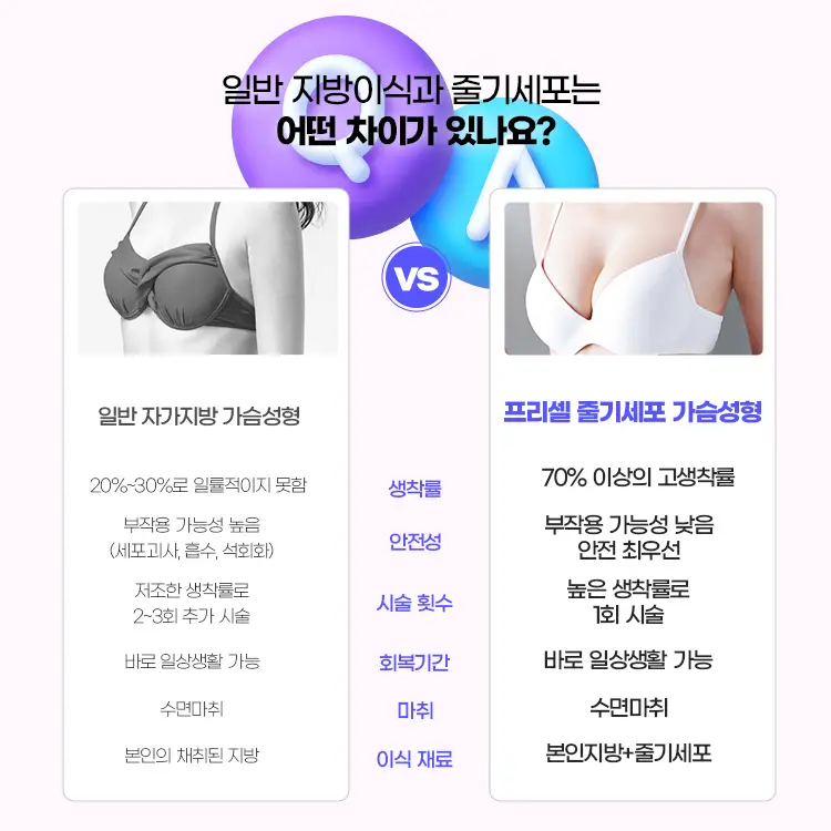 🌱 지방이식, 그래도 부족한 생착률이 고민이라면? 줄기세포가슴지방이식이 있습니다