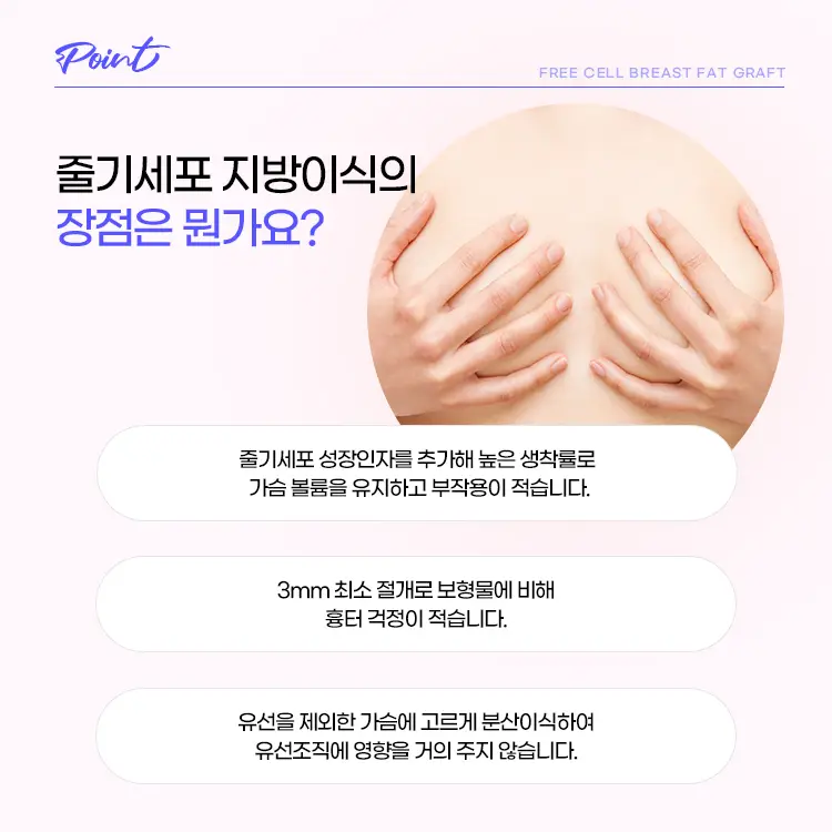 그리고 이 생착률을 더 안정적으로 높이기 위한 방법으로 주목받는 줄기세포가슴지방이식에 대해 알려드릴게요!