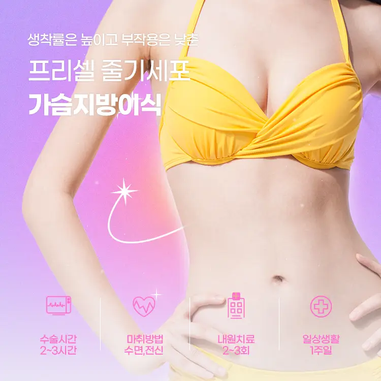 지방이식은 가슴 성형뿐만 아니라 지방 흡입을 통해 다른 부위의 체형을 동시에 개선할 수 있어요.