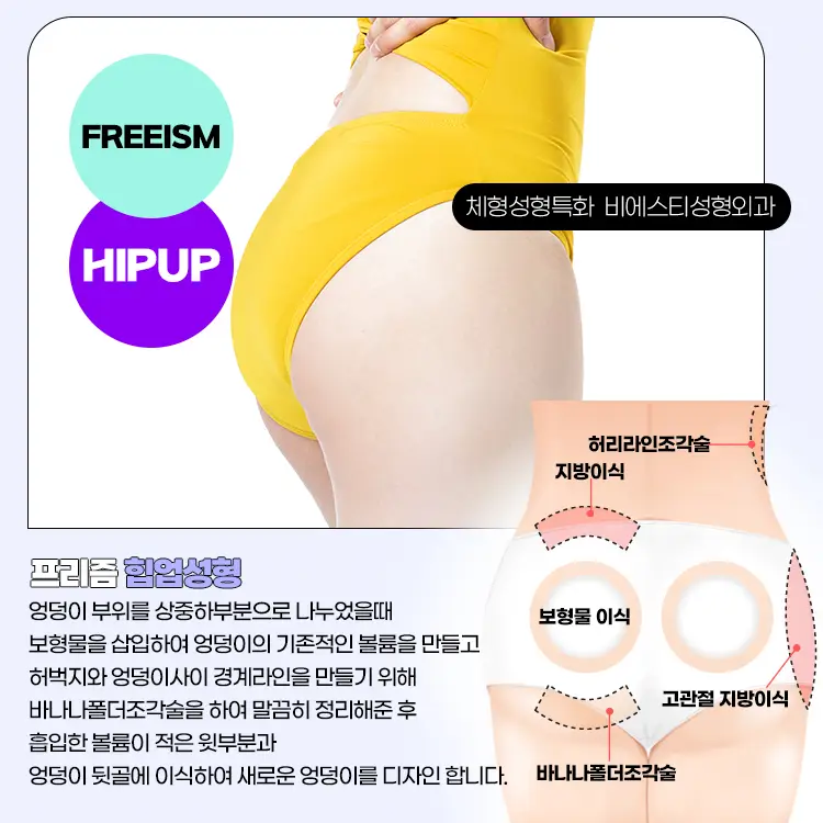 운동만으로 원하는 볼륨을 얻기 어려운 경우, 힙업 성형을 고려할 수도 있어요.
