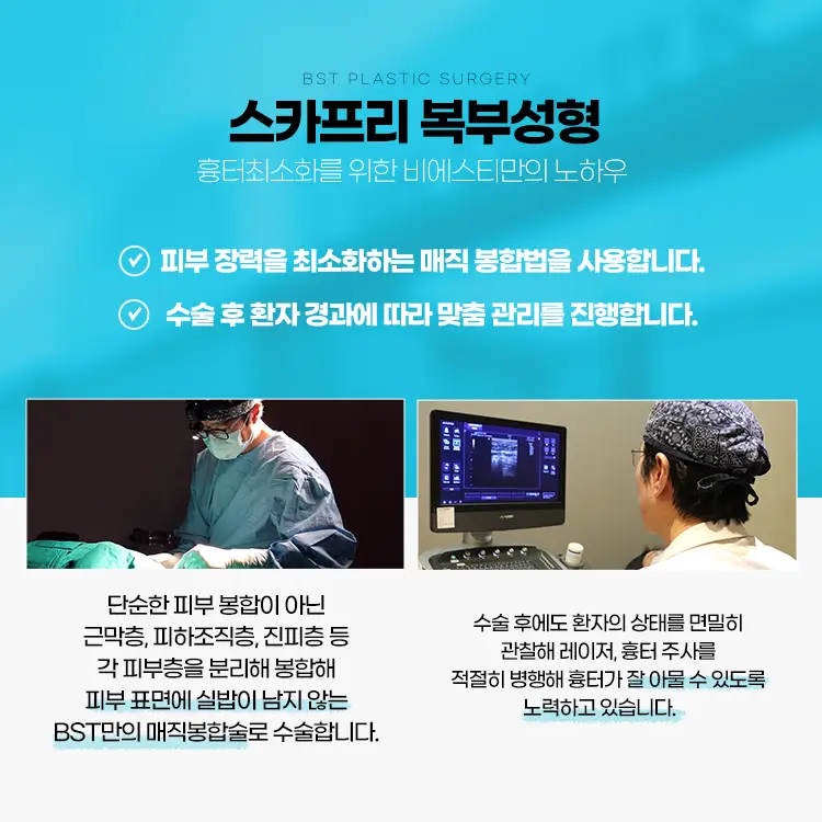 또한, 피부를 충분히 제거하지 않으면 원하는 탄탄한 복부 라인을 만들기 어려울 수도 있어요.