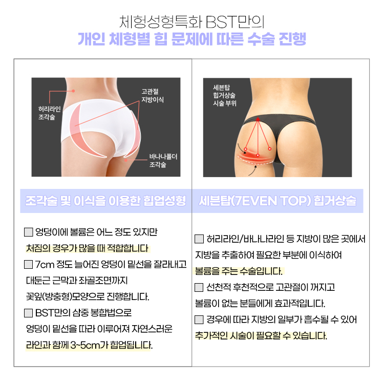 개인 체형별 힙 문제에 따른 힙업성형의 유형