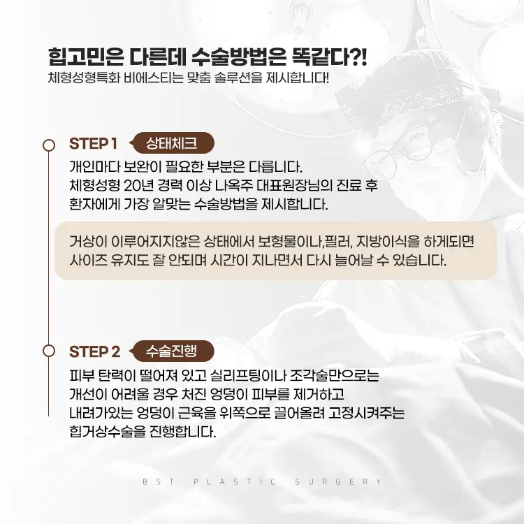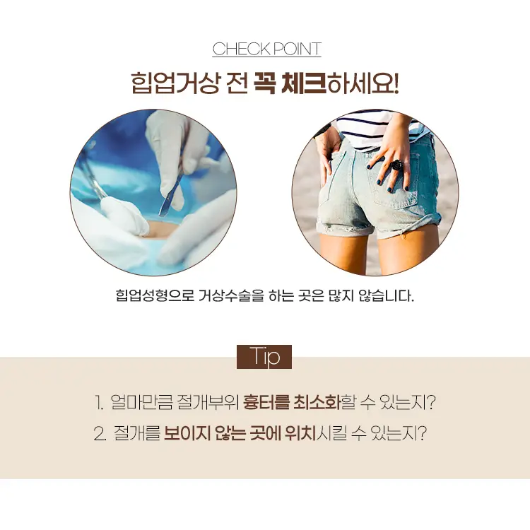 그래서 내가 엉덩이의 어떤 고민점을 가지고 있는 지를 중점으로 나에게 알맞은 힙업성형을 하는 것이 필요해요.