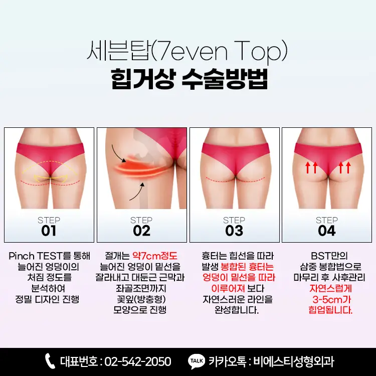 거상술은 처진 엉덩이를 물리적으로 끌어올려주는 수술이에요.