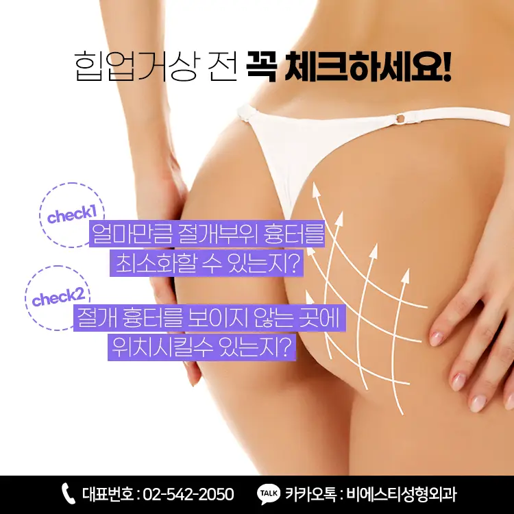절개가 필요한 수술이므로 엉덩이 주름 부위에 흉터가 남을 수 있어요.