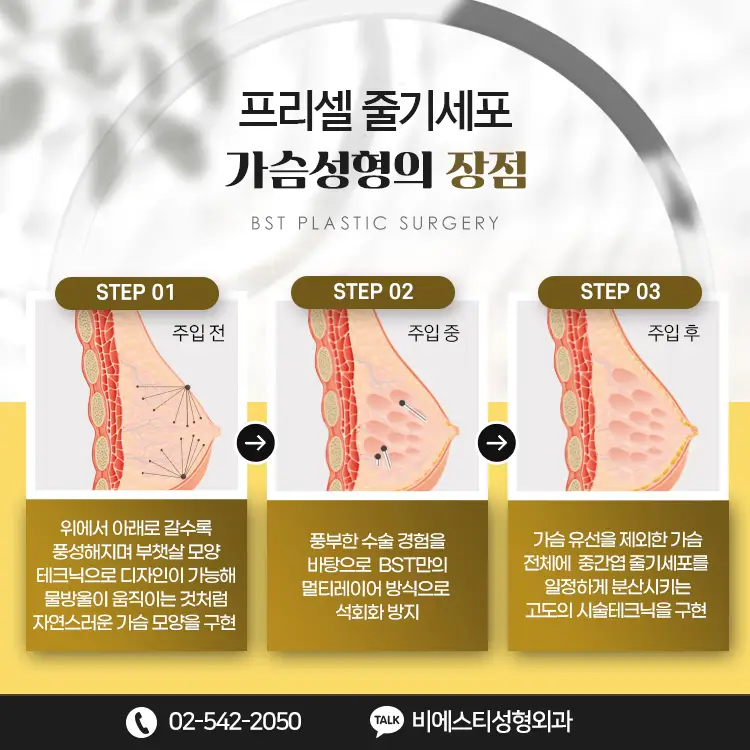 줄기세포지방 가슴성형은 "자연스러운 볼륨"과 "높은 생착률"을 동시에 기대할 수 있는 방법으로 주목받고 있습니다.