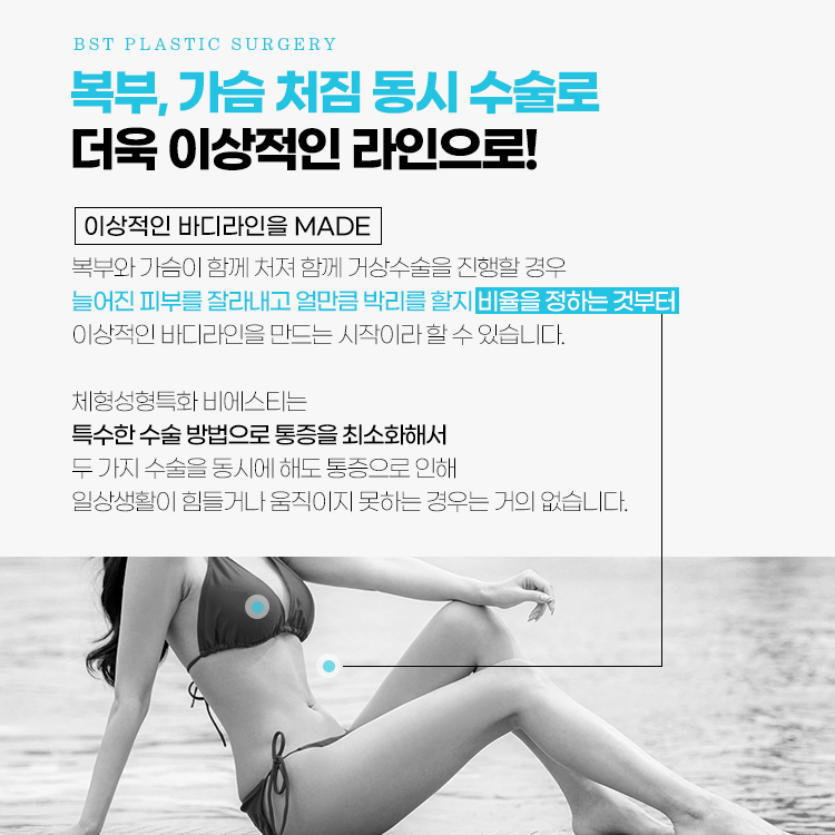 체형성형특화병원 비에스티성형외과에서는 특수한 수술 방법으로 통증을 최소화하여