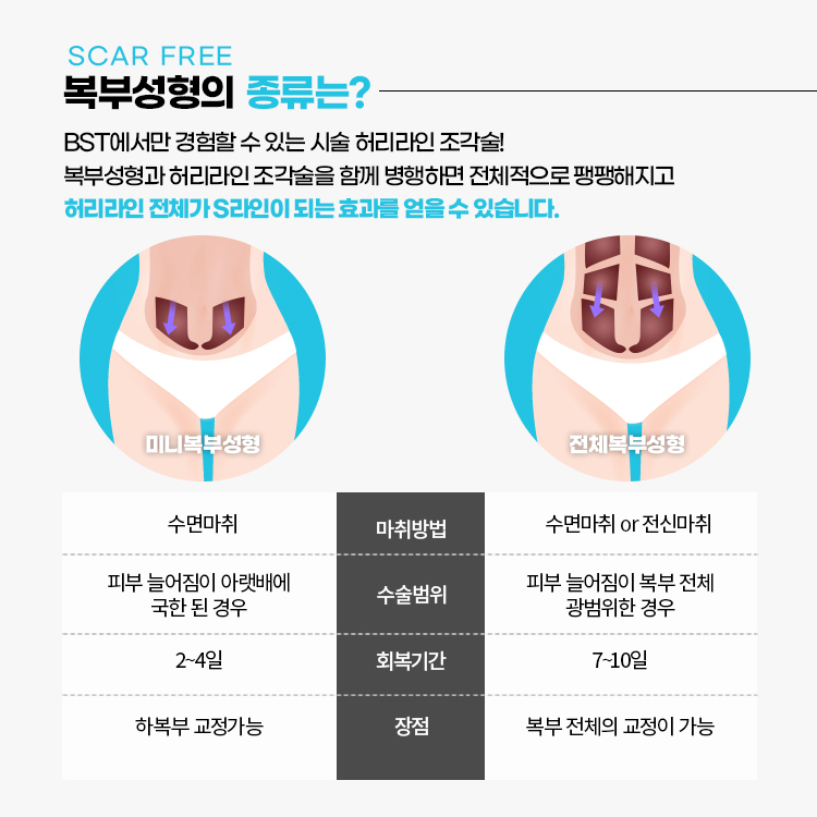 스카프리복부성형은 복부거상 중에서도 흉터를 최소화하는데 특화된 방법입니다.