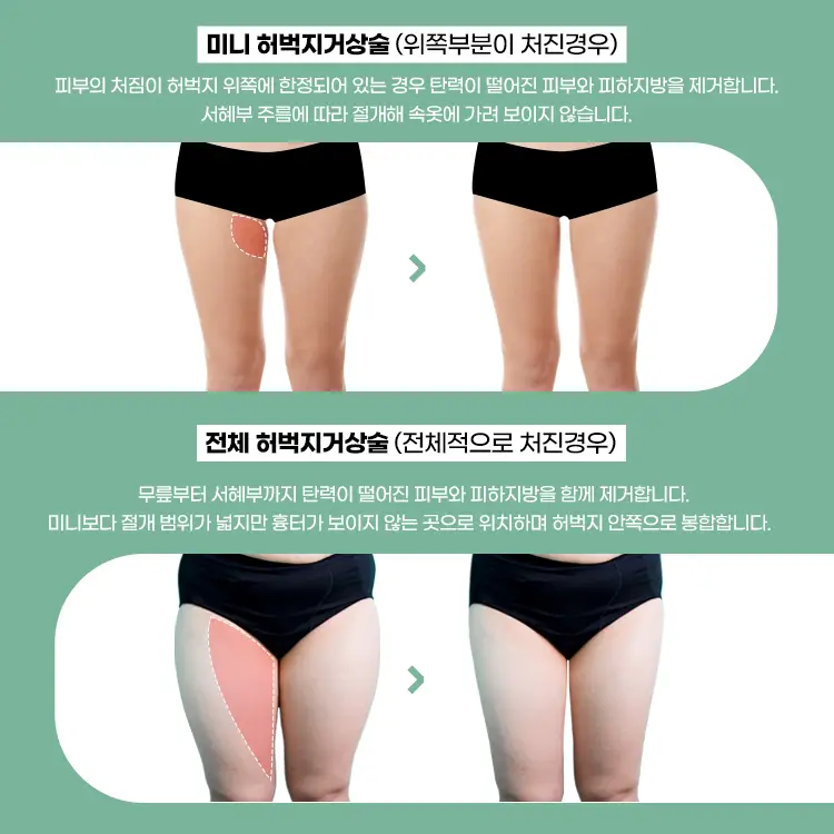 - 이미 피부가 늘어졌다면 허벅지 거상술이 가장 근본적인 해결책입니다.