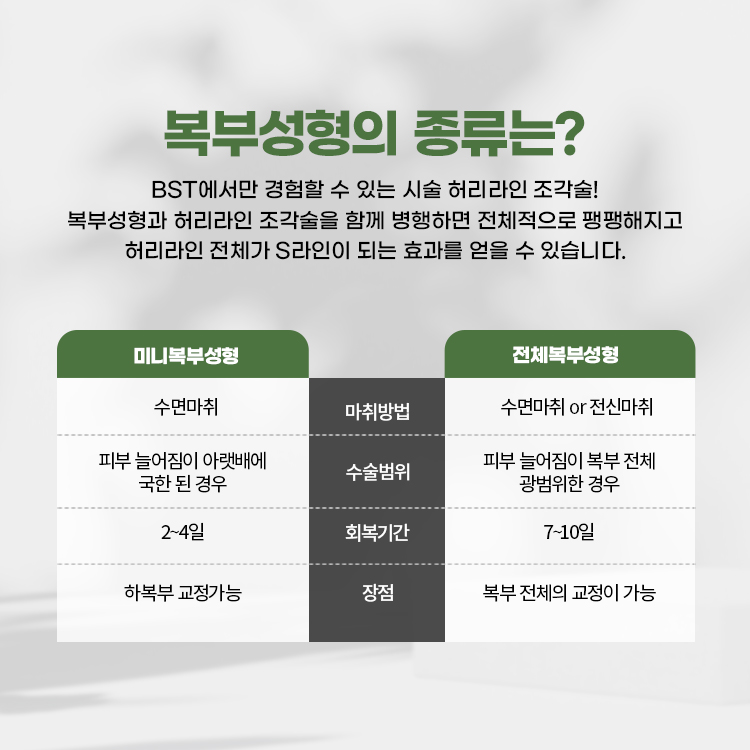 비에스티성형외과 스카프리 복부성형의 특별함