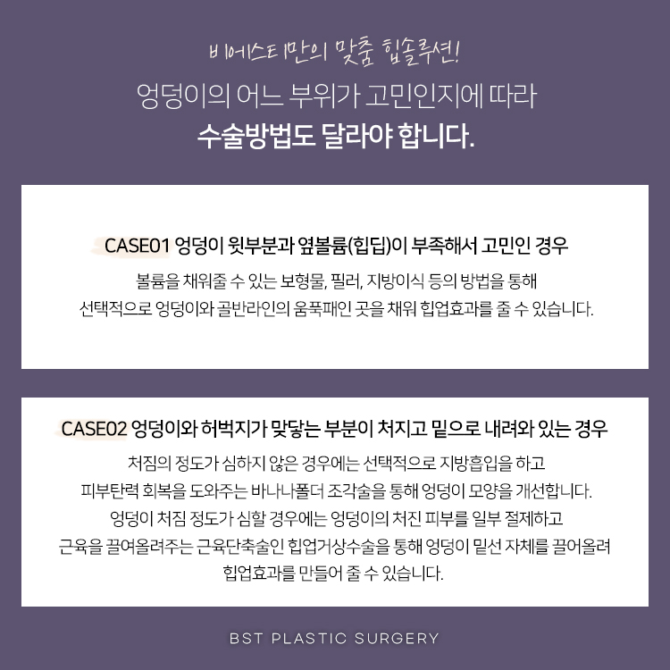 부위별 고민에 맞는 힙업성형 유형은?