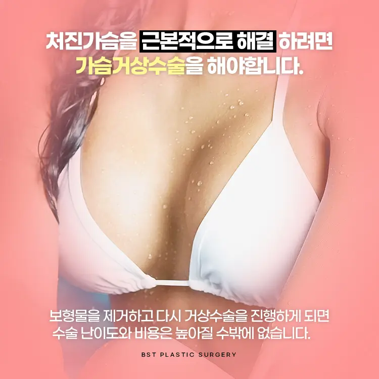 출산 후 가슴처짐을 개선하기 위해서 가슴거상술이 아닌 가슴 확대수술만 선택할 경우에는 몇 가지 문제가 발생할 수 있어요.