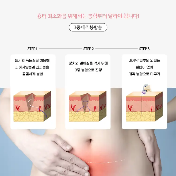 배꼽 재조정 위로 끌어올림 매끄러운 복부라인 완성