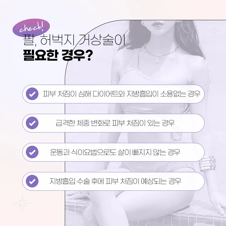 특히 팔처짐을 해결하기 위해 지방흡입을 생각하셨다면 지양하시는 것이 좋습니다.
