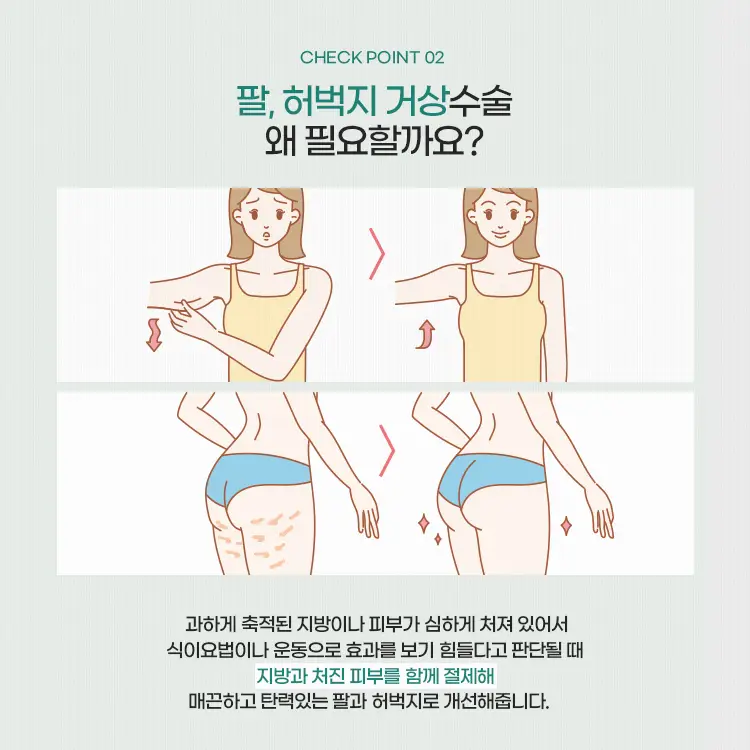 | 팔뚝살 제거수술 결정하기 전에 알아야 할 점 (2) | 2024.11.08 |