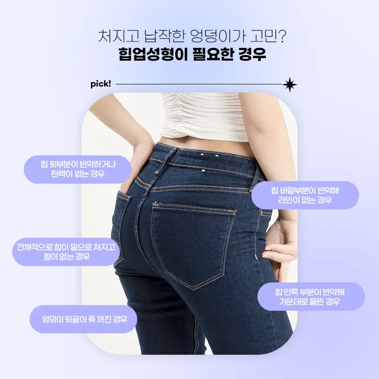 → 힙거상 + 힙업성형(지방이식 또는 보형물) 병행이 필요해요.