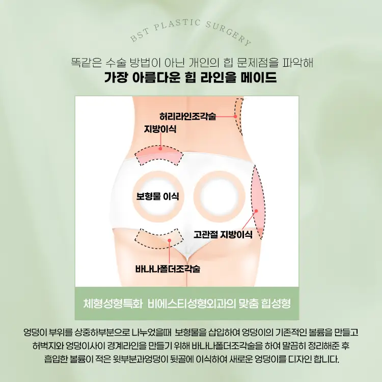 이 세 가지가 맞아떨어져야, 수술 후에도 “내가 딱 원하던 힙라인”이라는 만족감을 느낄 수 있습니다.